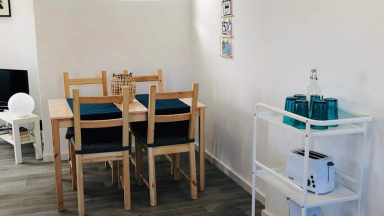 Das Apartment verfügt über eine voll ausgestattete Küchenzeile, in der die Gäste ihre eigenen Mahlzeiten zubereiten können. Alternativ können sie auch in den nahegelegenen Restaurants und Cafés speisen und die lokale Küche genießen.