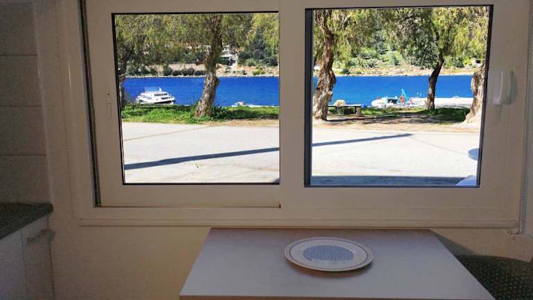 Verbringen Sie Ihren Urlaub im Sea Front Studio - Porto Boufalo - Evia und genießen Sie die klimatisierten Unterkünfte mit Balkon und kostenfreiem WLAN in Boufalo. Das Apartment bietet einen atemberaubenden Blick auf die Berge und das Meer. Entdecken Sie die umliegenden Sehenswürdigkeiten und entspannen Sie auf der Terrasse mit Meerblick.