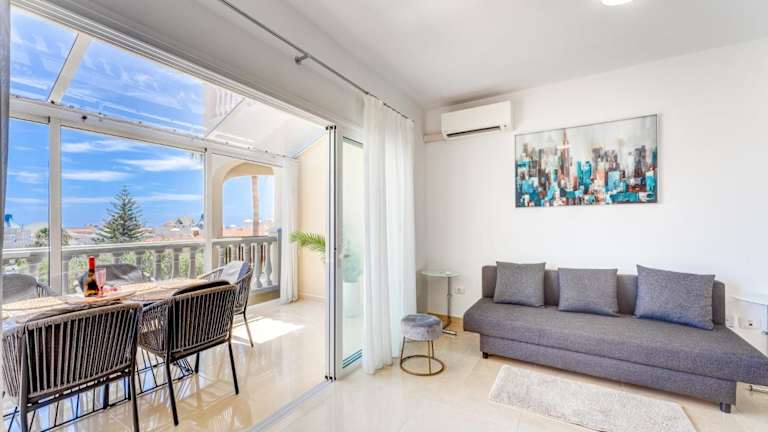 Das klimatisierte Apartment im Sea & Green Golf View Duplex Heated POOL bietet alle Annehmlichkeiten, die Sie für einen komfortablen Aufenthalt benötigen. Es verfügt über ein separates Schlafzimmer, ein Wohnzimmer, eine voll ausgestattete Küche mit Kühlschrank und Backofen sowie ein Badezimmer. Handtücher und Bettwäsche werden gestellt, um Ihren Aufenthalt so angenehm wie möglich zu gestalten. Genießen Sie den Gartenblick vom Balkon und nutzen Sie das kostenfreie WLAN in allen Bereichen des Apartments.