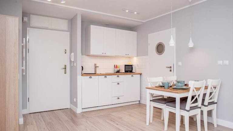 Das Apartment umfasst ein Schlafzimmer, ein Wohnzimmer sowie eine voll ausgestattete Küchenzeile mit Kühlschrank und Kaffeemaschine. Das Badezimmer ist mit einer Dusche und einem Haartrockner ausgestattet. Handtücher und Bettwäsche werden zur Verfügung gestellt. Die Unterkunft bietet Familienzimmer und ist rollstuhlgerecht.