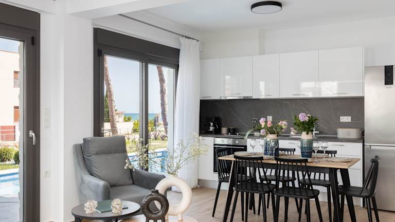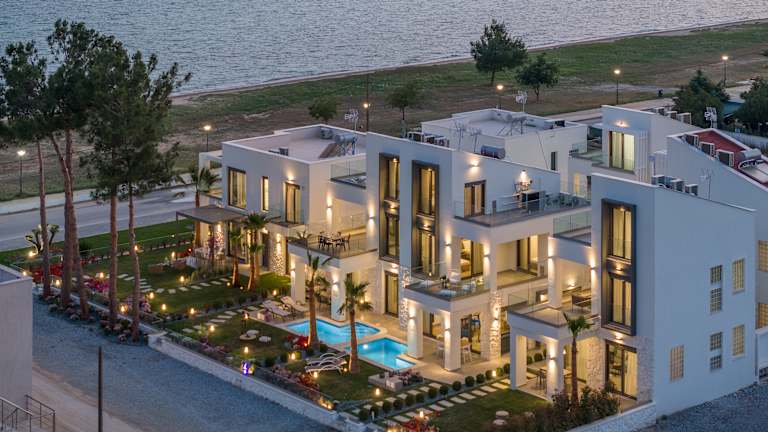 Sea Residence ist ein moderner Luxuskomplex mit sieben Residenzen, nur einen Steinwurf vom Meer entfernt – ideal für Familien und Paare, die sich verwöhnen lassen möchten! Unsere hochmodernen Residenzen sind von farbenfrohen, gepflegten Gärten mit exotischen Bäumen umgeben. Wenn Sie an einem privaten Pool entspannen und die frische Luft der Ägäis genießen möchten, buchen Sie am besten eine Residenz mit privatem Pool. Nur wenige Schritte entfernt befindet sich der Sandstrand direkt gegenüber der Anlage. Verbringen Sie unvergessliche Abende und genießen Sie mit Ihren Liebsten die traumhaften Sonnenuntergänge und die atemberaubende Aussicht!