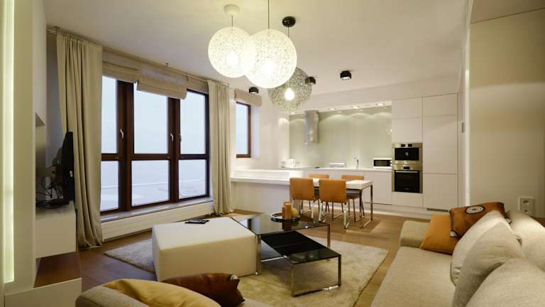 Die Apartments im Dom & House verfügen über ein separates Schlafzimmer sowie ein Wohnzimmer zur Entspannung. Jedes Apartment ist mit einer gut ausgestatteten Küche oder Küchenzeile versehen. Die Badezimmer sind entweder mit einer Dusche oder einer Badewanne ausgestattet.