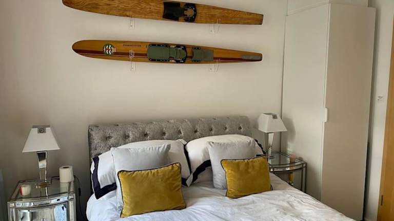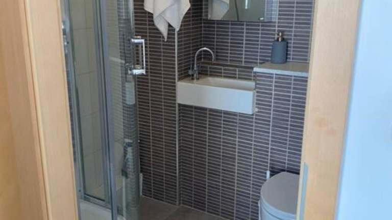 Die Ferienwohnung ist ausgestattet mit zwei Schlafzimmern, einem Flachbild-TV sowie einer voll ausgestatteten Küche, die einen Kühlschrank, Geschirrspüler, Waschmaschine, Ofen und Mikrowelle umfasst. Handtücher und Bettwäsche werden ebenfalls bereitgestellt.