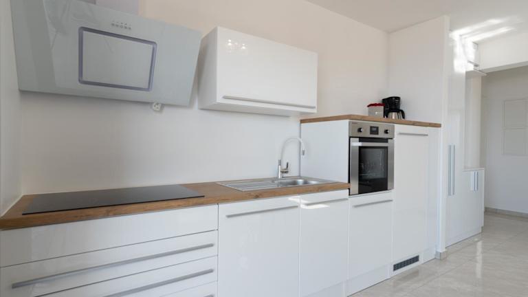 Das Apartment beinhaltet eine voll ausgestattete Küche mit Kühlschrank und Kaffeemaschine, jedoch keine Informationen über gastronomische Angebote oder Zusatzverpflegungsmöglichkeiten.