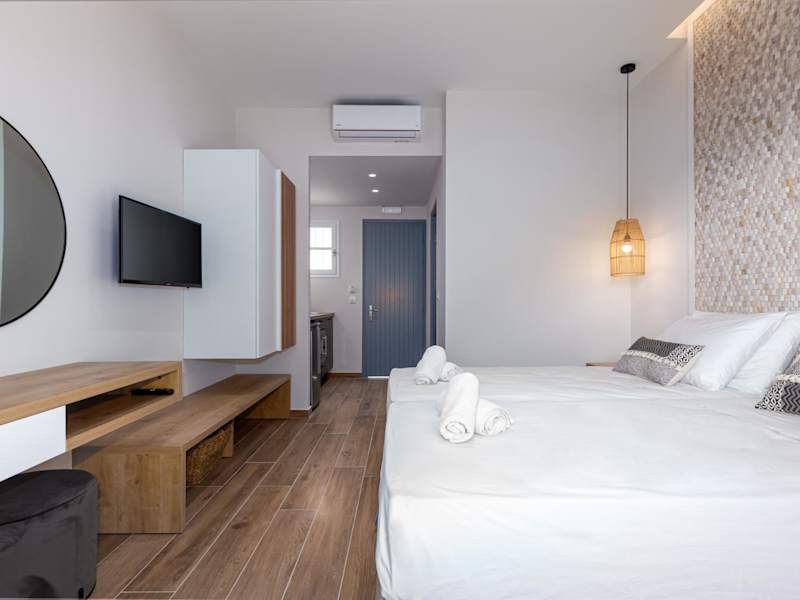 Die klimatisierten Zimmer und Apartments im Sea View Hotel sind von üppigen Olivenbäumen umgeben und bieten einen herrlichen Blick auf das Meer. Jede Unterkunft verfügt über einen möblierten Balkon, eine Küchenzeile, Sat-TV und einen Haartrockner. Bademäntel werden ebenfalls zur Verfügung gestellt.