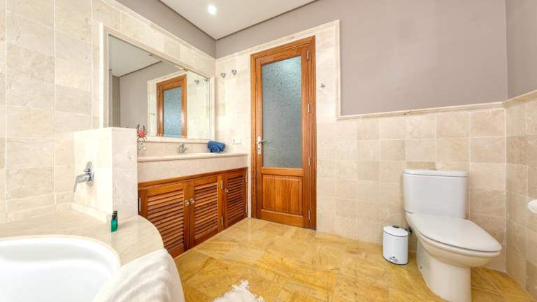 Die Villa umfasst 3 Schlafzimmer, ein Wohnzimmer sowie 3 Badezimmer mit Bidet und Dusche. Handtücher und Bettwäsche werden bereitgestellt. Zur Ausstattung gehören zudem ein Sicherheitsalarm und zusätzliche Einrichtungen wie ein Babybett für kleine Gäste.