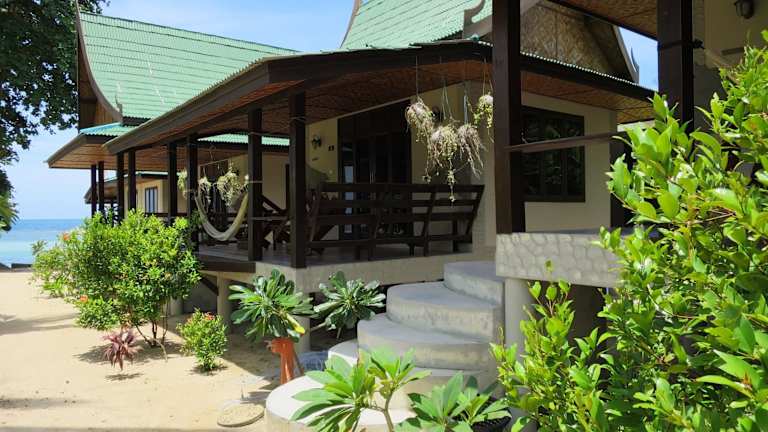 Die Seaflower Bungalows liegen direkt am Strand Haad Chao Phao an der Nordwestküste von Koh Phangan. Die Unterkunft bietet einen wunderschönen Blick auf das Meer und ist der perfekte Ort, um die Natur und die Ruhe der Insel zu genießen. Der Thong Sala Pier, von dem aus Boote ablegen, ist nur 15 Fahrminuten entfernt. Schnorchelplätze sind bereits nach 5 Gehminuten erreichbar, so dass Sie die atemberaubende Unterwasserwelt erkunden können.