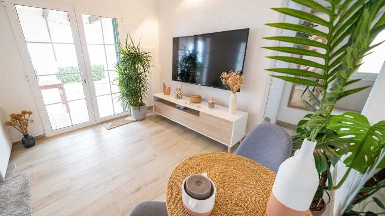 Die Villa verfügt über 3 Schlafzimmer, ein Wohnzimmer und eine voll ausgestattete Küche. Diese ist mit einem Kühlschrank und einer Kaffeemaschine ausgestattet. Es gibt 2 Badezimmer mit Dusche und kostenlosen Pflegeprodukten. Handtücher und Bettwäsche werden bereitgestellt.