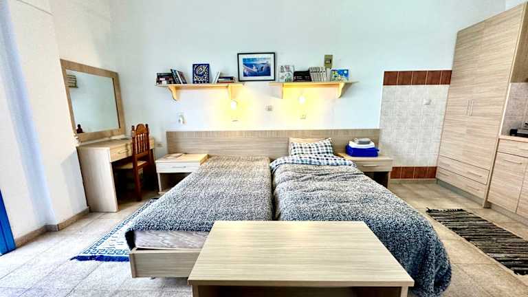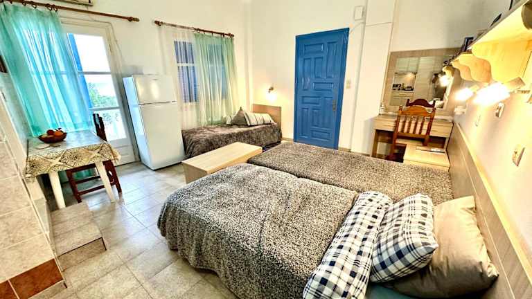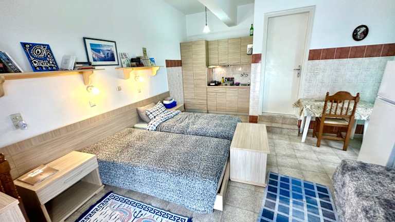 Die Wohneinheiten verfügen über eine Terrasse mit Meerblick, eine voll ausgestattete Küche sowie ein eigenes Badezimmer mit Dusche. Die Klimaanlage sorgt für zusätzlichen Komfort, während Sitz- und Essbereiche in den Zimmern vorhanden sind.