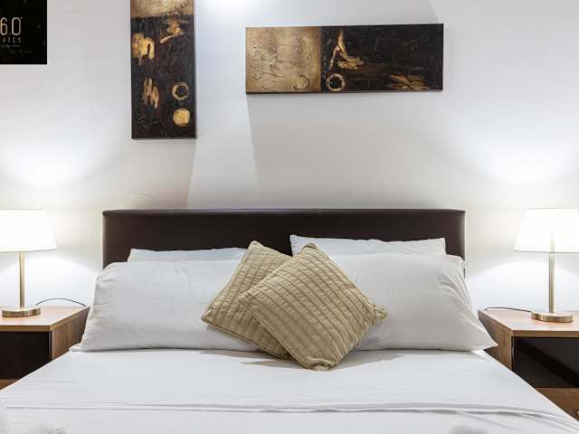 Die Unterkunft verfügt über eine Klimaanlage und bietet zwei Schlafzimmer, ein Wohnzimmer, eine voll ausgestattete Küche mit einem Kühlschrank sowie ein Badezimmer mit Dusche und Haartrockner.