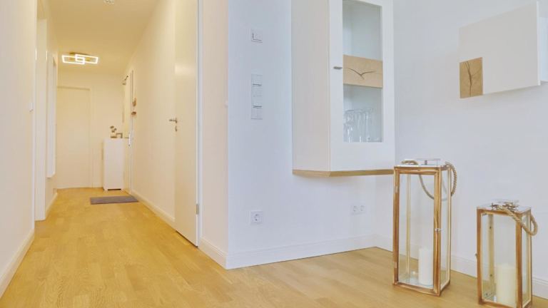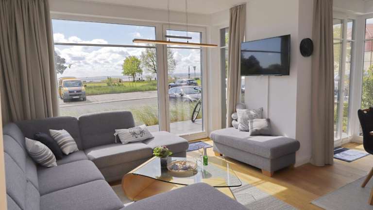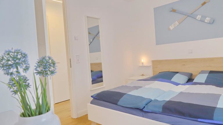 Die Ferienwohnung bietet zwei Schlafzimmer und ein Wohnzimmer. Eine gut ausgestattete Küche mit Kühlschrank und Geschirrspüler ist vorhanden, ebenso wie ein Fernseher. Der Balkon oder die Terrasse ermöglicht es den Gästen, die Umgebung zu genießen.
