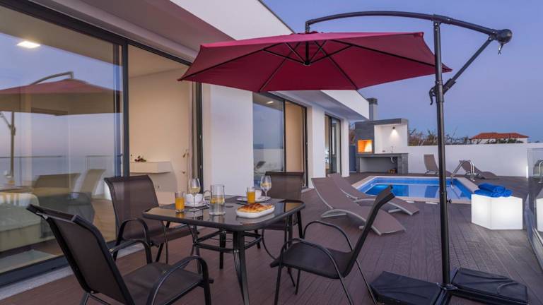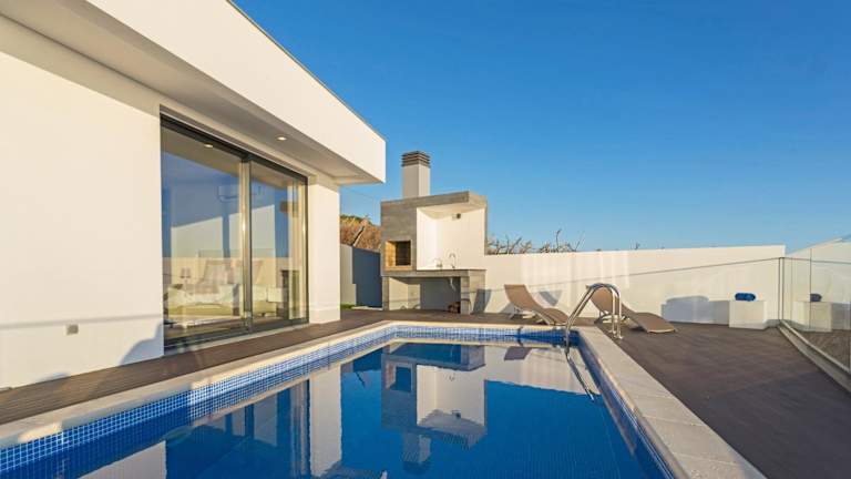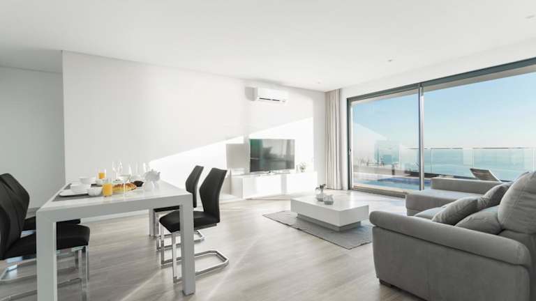 Das Ferienhaus verfügt über zwei Schlafzimmer und ein Badezimmer. Es bietet Platz für bis zu vier Personen und ist klimatisiert. Die Unterkunft ist modern eingerichtet und verfügt über einen Flachbild-Kabel-TV, einen Essbereich und eine voll ausgestattete Küche. Bettwäsche und Handtücher werden gestellt. Von der Terrasse aus können Gäste den Blick auf das Meer genießen.