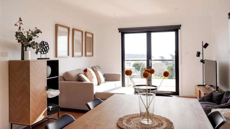 Das Ferienhaus bietet 2 komfortable Schlafzimmer, eine gut ausgestattete Küche mit Kühlschrank und Geschirrspüler, einen gemütlichen Sitzbereich und ein Badezimmer mit Dusche. Handtücher und Bettwäsche werden gestellt, um Ihren Aufenthalt so angenehm wie möglich zu gestalten.