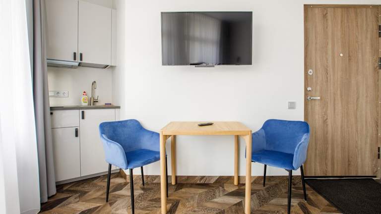 Die Zimmer sind mit einem Flachbild-TV, Satellitenkanälen, Kühlschrank, Wasserkocher, Dusche, Haartrockner und Kleiderschrank ausgestattet. Ausgewählte Zimmer verfügen darüber hinaus über eine Küche mit Herdplatte. Jedes Zimmer ist mit einem eigenen Badezimmer und Bettwäsche ausgestattet.