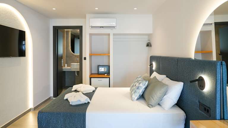 Die Zimmer sind mit einer Klimaanlage eingerichtet und verfügen größtenteils über einen Balkon mit Meerblick. Zur Standardausstattung gehören ein Doppelbett, ein Minikühlschrank, ein Safe (gegen Gebühr), ein Telefon, ein TV-Gerät und kostenloses WLAN. Die Badezimmer sind mit einer Dusche, einem Haartrockner und einem Telefon ausgestattet.