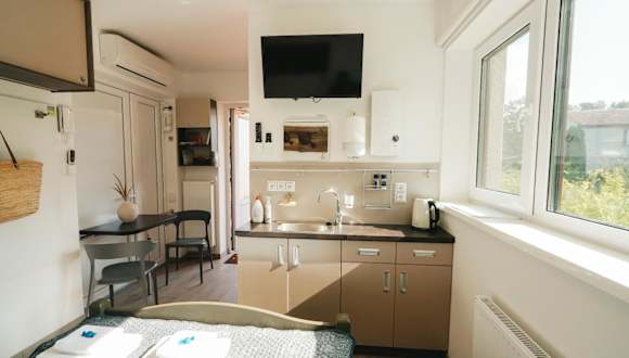 Im Seaside Studio Apartment THE RED FISH haben Sie die Möglichkeit, Ihre eigenen Mahlzeiten zuzubereiten, da eine voll ausgestattete Küchenzeile vorhanden ist. Darüber hinaus gibt es auch Grillmöglichkeiten, so dass Sie im Freien speisen und die frische Luft genießen können.