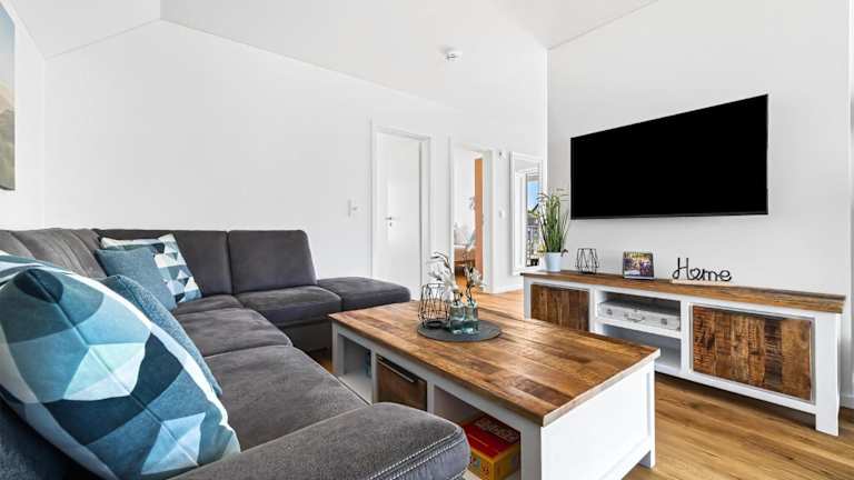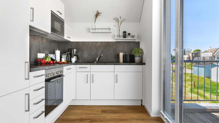 Die Ferienwohnung bietet zwei Schlafzimmer, ein Wohnzimmer und eine gut ausgestattete Küche.
