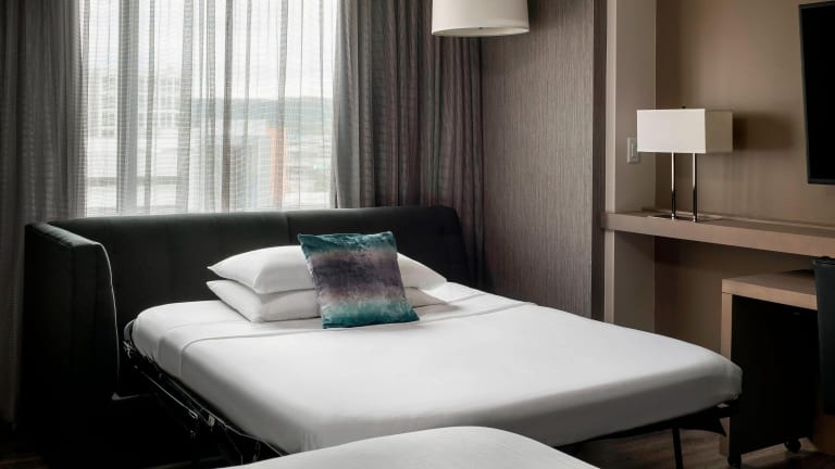 Die Zimmer im Seattle Marriott Bellevue sind klimatisiert und verfügen über moderne Annehmlichkeiten wie einen 55-Zoll-Flachbild-TV, einen Sitzbereich, einen kleinen Kühlschrank, Kaffeezubehör und ein Badezimmer mit Haartrockner und kostenfreien Pflegeprodukten. Jedes Zimmer ist geschmackvoll eingerichtet und bietet den Gästen einen komfortablen Rückzugsort nach einem langen Tag.