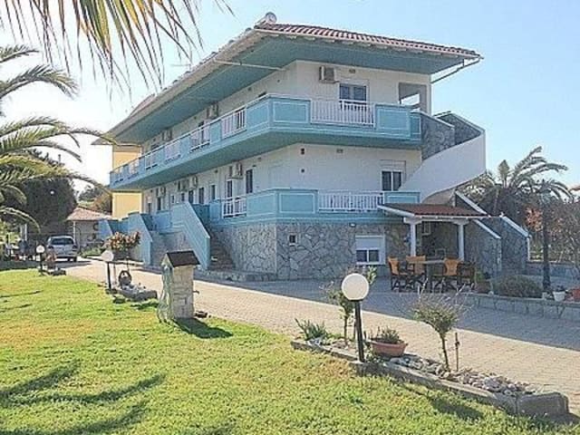 Das Sea View Aparthotel befindet sich in idealer Lage in Nea Potidea, nur 50 m vom Strand entfernt. Die Umgebung bietet Ihnen eine malerische Kulisse mit dem Meer direkt vor der Haustür. Das Zentrum von Nea Potidea ist nur 1 km entfernt und bietet Ihnen verschiedene Einkaufsmöglichkeiten und Restaurants. Die Stadt Nea Moudania ist nur 6 km entfernt und bietet zusätzliche Freizeitmöglichkeiten wie Minigolf und Go-Kart.