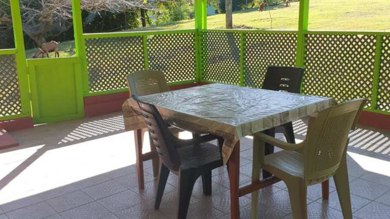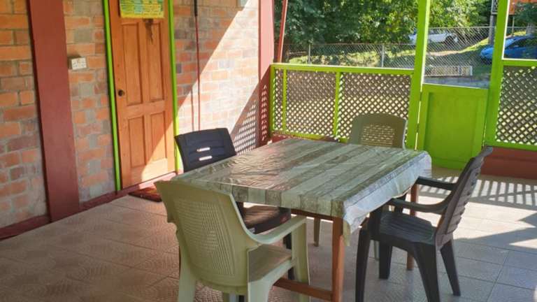 Die Unterkunft bietet 2 Apartments zur Selbstverpflegung, die eine gemütliche Atmosphäre bieten. Die Apartments sind teilweise klimatisiert und verfügen über einen komfortablen Sitzbereich und eine Terrasse, auf der Sie entspannen und die tropische Umgebung genießen können. Jedes Apartment verfügt über einen Essbereich und eine voll ausgestattete Küche mit allen notwendigen Geräten, einschließlich Backofen, Toaster, Kühlschrank, Kochfeld, Kaffeemaschine und Wasserkocher. Die Gäste haben Zugang zu einem Gemeinschaftsbad mit einer Badewanne oder Dusche, und Bettwäsche wird gestellt.