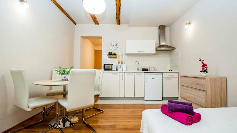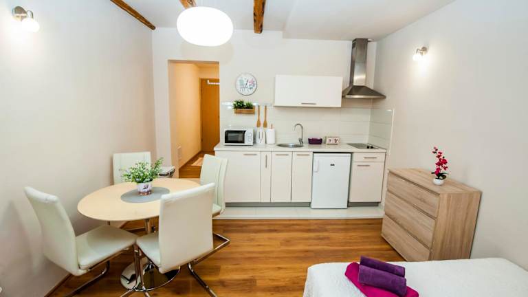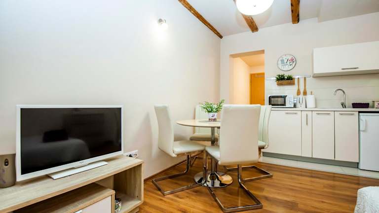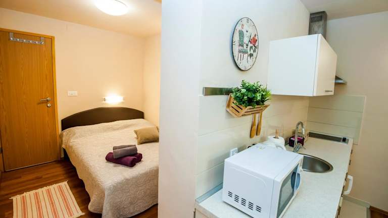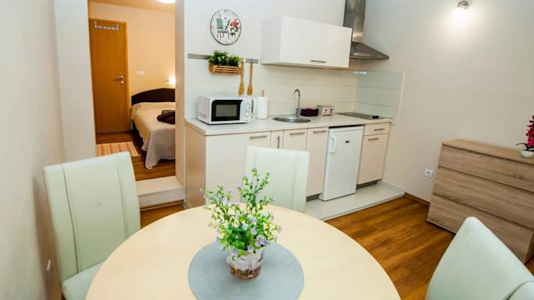 In den Sebenicum Apartments haben Sie die Möglichkeit, Ihre eigenen Mahlzeiten zuzubereiten, da jede Unterkunft über eine voll ausgestattete Küche verfügt. Alternativ können Sie in einem der nahegelegenen Restaurants die lokale Küche genießen.