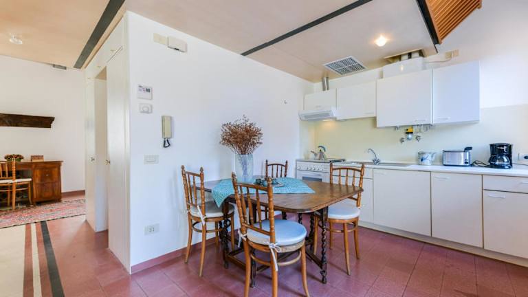 Die Ferienwohnung verfügt über ein Schlafzimmer, ein Wohnzimmer, eine voll ausgestattete Küche mit Kühlschrank und Kaffeemaschine sowie ein Badezimmer mit Bidet und Badewanne oder Dusche. Handtücher und Bettwäsche sind ebenfalls vorhanden.