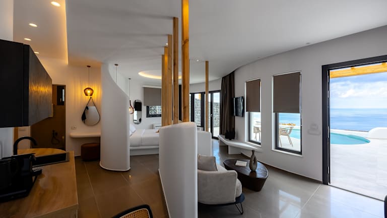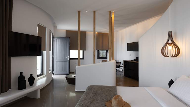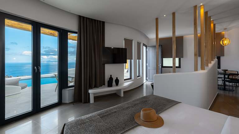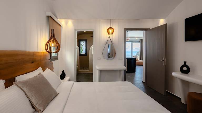 Die Zimmer sind ausgestattet mit Klimaanlage, einer Terrasse mit Meerblick, einem Flachbild-Satelliten-TV, Sitzgelegenheiten und einer gut ausgestatteten Küchenzeile. Jedes Zimmer verfügt über ein eigenes Badezimmer mit Dusche, kostenlosen Pflegeprodukten und einem Haartrockner. Zudem sind Kühlschrank und Kaffeemaschine vorhanden.