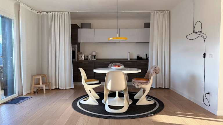 Die Ferienwohnung umfasst 2 Schlafzimmer, ein Wohnzimmer mit Flachbild-TV, eine gut ausgestattete Küche mit Kühlschrank und Geschirrspüler sowie ein Badezimmer mit Bidet. Ein Balkon mit Bergblick ist vorhanden und Handtücher sowie Bettwäsche werden bereitgestellt.