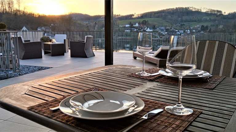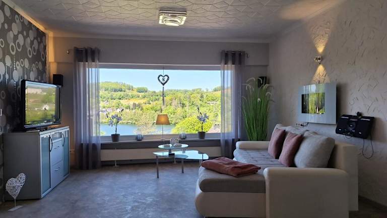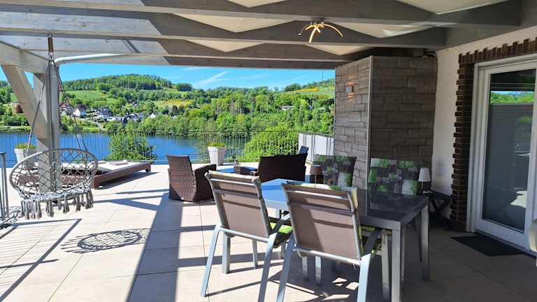 Die Seeblick-Ferienwohnung im "Ferienhaus Agger-Blick" zeichnet sich durch eine traumhafte Sonnen-Terrasse, Sauna, E-Kamin und Kajak aus. Sie bietet Annehmlichkeiten wie kostenlose Fahrräder, einen Garten sowie Grillmöglichkeiten. Die Unterkunft bietet zudem einen kostenlosen Privatparkplatz und eine rund um die Uhr besetzte Rezeption, an der die Mitarbeitenden sowohl Deutsch als auch Englisch sprechen.