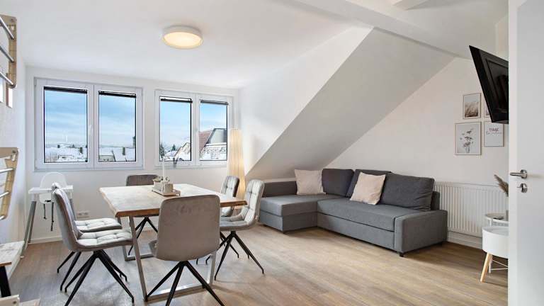 Seeblick und doch zentral ist eine voll ausgestattete Ferienwohnung, die modernen Komfort und eine zentrale Lage kombiniert. Die Unterkunft ist in einer Nichtraucherumgebung untergebracht und bietet kostenlosen WLAN-Zugang sowie Privatparkplätze.