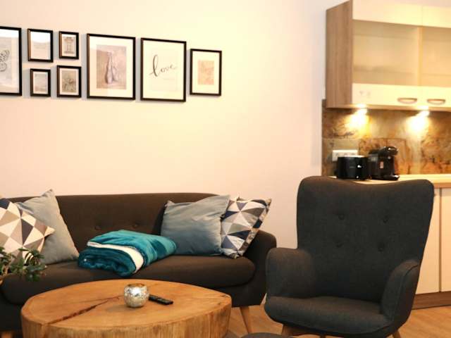 Die Apartments sind mit einem Balkon und Bergblick ausgestattet. Jedes Apartment bietet einen Sitzbereich, einen Satelliten-Flachbild-TV sowie eine voll ausgestattete Küchenzeile mit Kühlschrank, Geschirrspüler, Ofen, Mikrowelle, Herdplatte, Kaffeemaschine und Wasserkocher. Des Weiteren ist ein eigenes Bad mit Dusche und Haartrockner vorhanden.