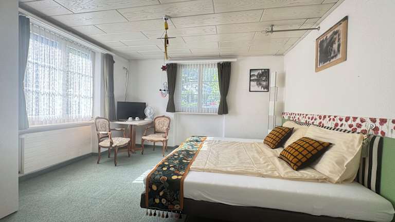 Das Seehotel Schwert in Gersau bietet eine idyllische Lage direkt am Ufer des Vierwaldstättersees. Mit einem Balkon und Seeblick in allen Zimmern können die Gäste die atemberaubende Aussicht auf den See genießen. Die Zimmer sind komfortabel eingerichtet und verfügen über ein eigenes Badezimmer. Kostenlose Privatparkplätze stehen den Gästen zur Verfügung. Die Bushaltestelle Gersau-Schiffstation befindet sich nur 20 m vom Hotel entfernt und ermöglicht eine einfache Anbindung an die umliegenden Städte Brunnen und Schwyz.
