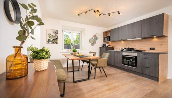 Ankommen, Tür hinter sich schließen und ganz wie zu Hause fühlen. Wenn Sie für Ihren Urlaub am Mieminger Plateau mehr Platz, Unabhängigkeit und ein privates Ambiente suchen, dann sind unsere Alpine Easy Flats in Obermieming 156 genau das Richtige für Sie. Hier kombinieren wir modernes Wohndesign mit der Freiheit einer eigenen Ferienwohnung – ideal für Familien, Freunde oder Paare, die gerne „ihr eigenes Ding“ machen. Großzügig wohnen mit Weitblick Unsere drei Apartments (je ca. 70 m²) bieten Ihnen alles, was Sie für eine entspannte Auszeit brauchen: Platz für alle: Jede Wohnung verfügt über separate Schlafzimmer und ein großzügiges Wohnzimmer. Vollausstattung: Eine moderne, voll ausgestattete Küche lässt keine Wünsche offen – vom schnellen Espresso am Morgen bis zum gemeinsamen Kochabend. Panorama pur: Genießen Sie die milde Sonne des Plateaus auf Ihrem privaten Balkon oder der Terrasse mit direktem Blick auf die imposante Mieminger Kette. Das Beste aus zwei Welten Obwohl Sie bei uns völlig autark sind, müssen Sie auf keinen Komfort verzichten: Frühstücks-Option: Keine Lust, selbst Brötchen zu holen? Gerne können Sie das reichhaltige Frühstücksbuffet in unserer nahegelegenen Pension Seelos (Alpine Easy Stay) dazubuchen. Sommer-Highlight: Als Gast der Flats haben Sie im Sommer Zugang zum Garten mit Pool – die perfekte Erfrischung nach einer Wanderung! Mieming direkt vor der Haustür Die Alpine Easy Flats sind der ideale Basislager für Ihre Entdeckungsreisen. Mit der kostenlosen Welcome Card (ab 2 Nächten) liegen Ihnen die Highlights der Region Innsbruck zu Füßen: Ob kostenlose Fahrten mit den Regionalbussen, geführte Touren oder Ermäßigungen bei den Bergbahnen – Sie entscheiden, wie aktiv Ihr Tag wird. Warum Sie die Alpine Easy Flats lieben werden: Modernes Alpin-Design: Viel Holz, klare Linien und eine gemütliche Atmosphäre. E-Mobilität: Parken Sie direkt am Haus, inklusive E-Ladestation für Ihr Auto. Digitaler Service: Nutzen Sie unser Guestnet für Restaurant-Tipps und Wanderrouten direkt auf Ihrem Smartphone. Gönnen Sie sich die Freiheit, Ihren Urlaub so zu gestalten, wie Sie es wollen. Wir freuen uns auf Sie!