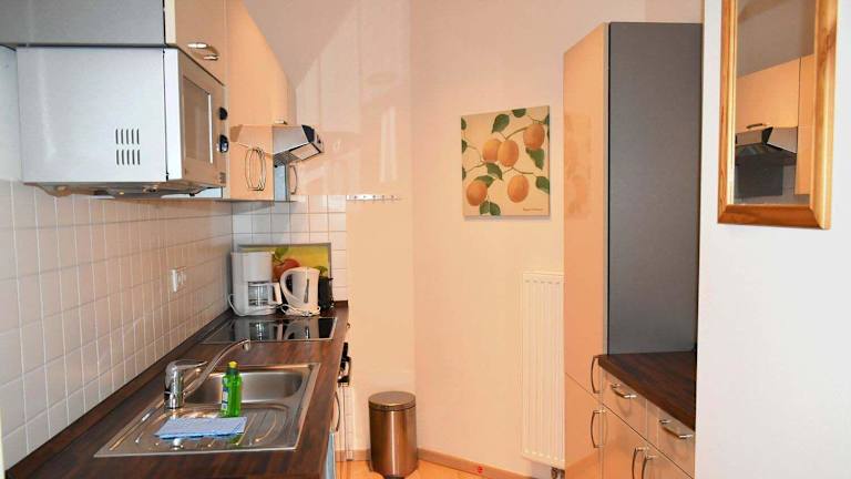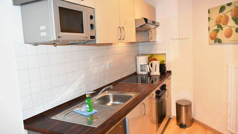 Die Ferienwohnung ist mit einem Flachbild-TV mit Satellitenkanälen, einer voll ausgestatteten Küchenzeile (inklusive Kühlschrank und Geschirrspüler) und einem Badezimmer mit Dusche ausgestattet. Handtücher und Bettwäsche können gegen Aufpreis bereitgestellt werden.