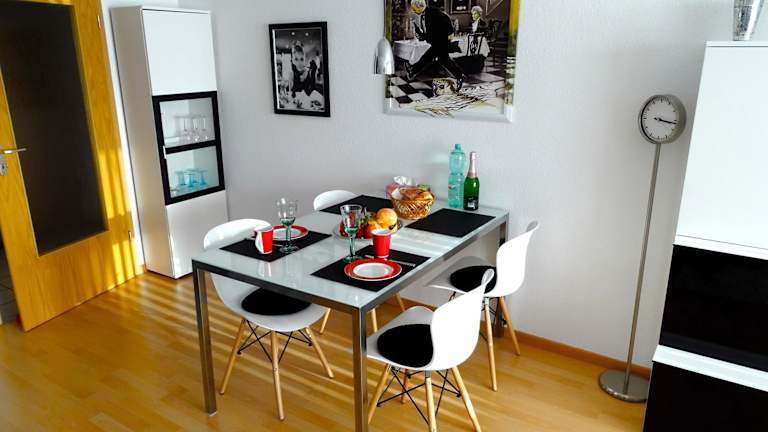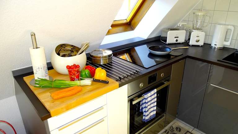 Das Apartment verfügt über eine voll ausgestattete Küche, in der Sie Ihre eigenen Mahlzeiten zubereiten können. In der näheren Umgebung finden Sie jedoch auch eine Vielzahl von Restaurants und Cafés, in denen Sie lokale Spezialitäten und internationale Gerichte genießen können.