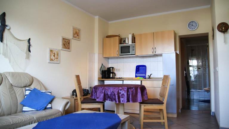 Seepferdchen Warnemünde ist eine Ferienwohnung, die eine komfortable Unterkunft an der Küste bietet. Die Lage ermöglicht einen unmittelbaren Zugang zum Strand und verschiedenen Freizeitmöglichkeiten.