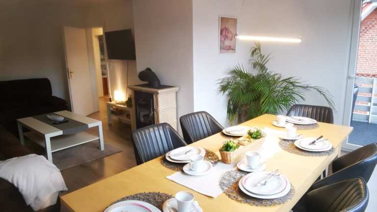 Die Ferienwohnung umfasst 3 Schlafzimmer, ein Wohnzimmer, ein Flachbild-TV, eine gut ausgestattete Küche mit einem Kühlschrank und einem Geschirrspüler sowie ein Badezimmer mit einer Badewanne. Handtücher und Bettwäsche werden bereitgestellt.