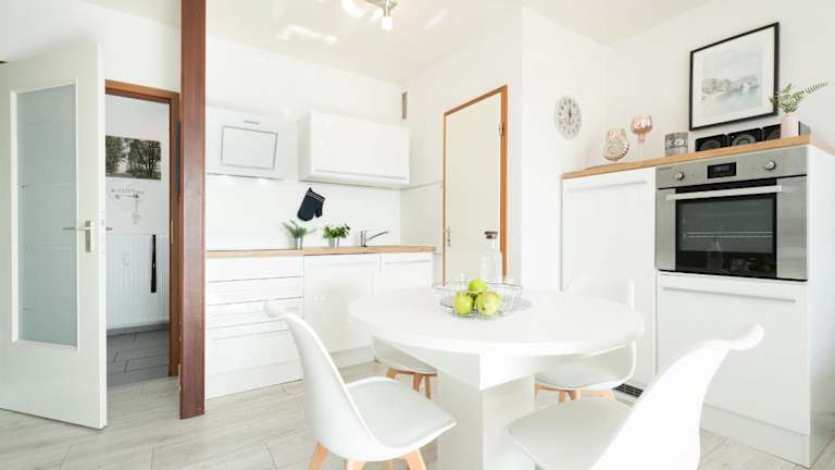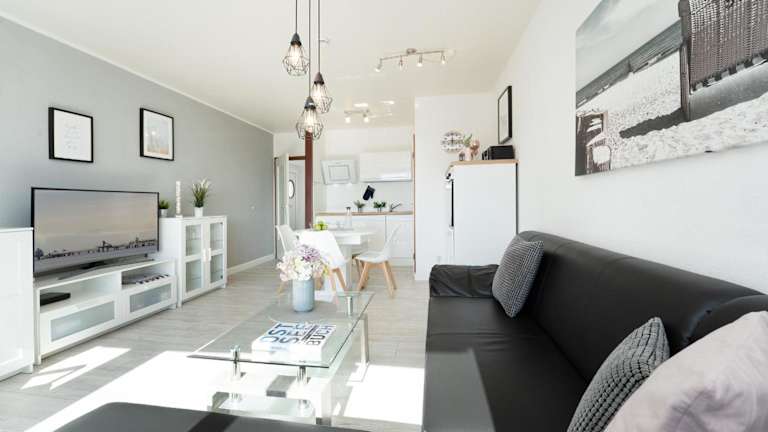Die Ferienwohnung umfasst ein Schlafzimmer, ein Wohnzimmer sowie eine gut ausgestattete Küche mit Kühlschrank und Geschirrspüler. Zur Ausstattung gehören ein Fernseher, ein DVD-Player und ein CD-Player. Es stehen auch Gartenmöbel zur Verfügung.