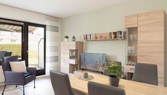 Die Ferienwohnung ist mit einem Schlafzimmer ausgestattet und verfügt über eine gut ausgestattete Küche mit Kühlschrank und Ofen. Das Wohnzimmer sowie ein TV runden die Ausstattung ab.