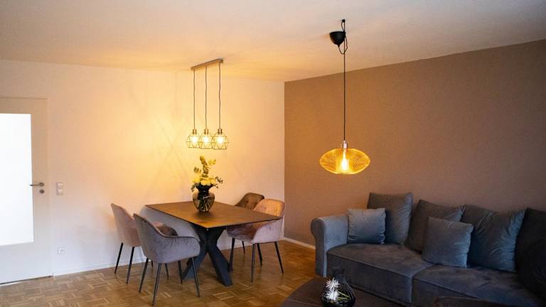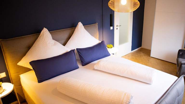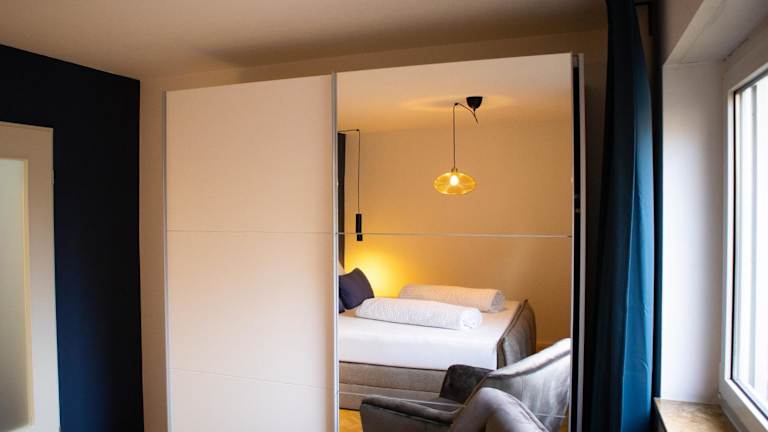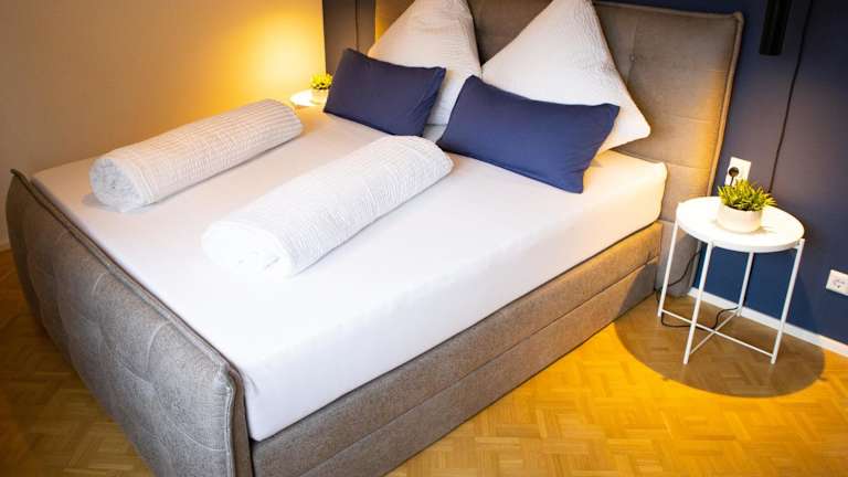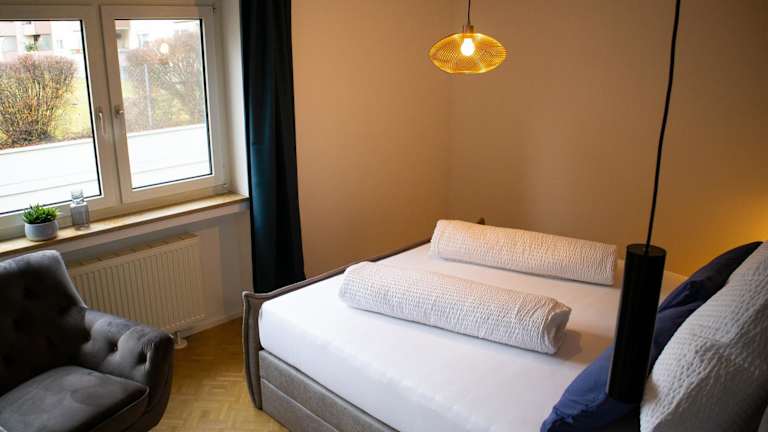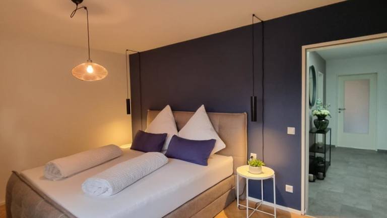 Die Ferienwohnung verfügt über ein Schlafzimmer, ein Wohnzimmer sowie eine voll ausgestattete Küche mit Kühlschrank und Kaffeemaschine. Das Badezimmer ist mit einer Dusche und einem Haartrockner ausgestattet. Handtücher und Bettwäsche werden bereitgestellt.