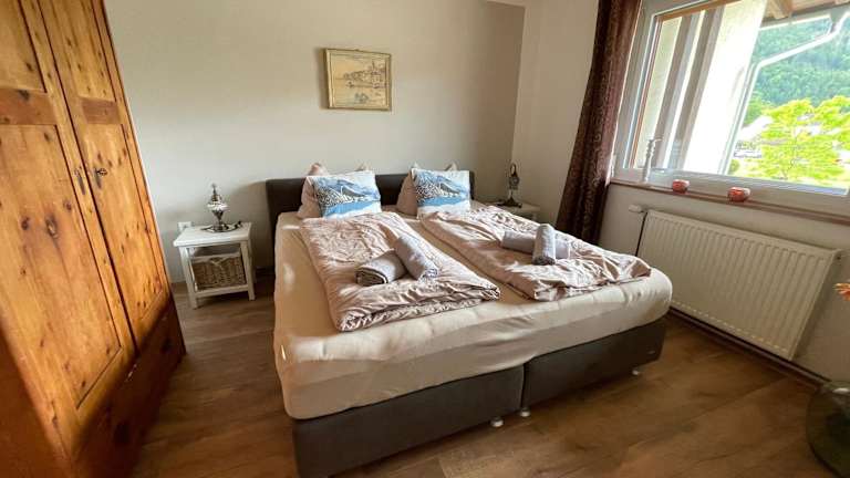 Die Ferienwohnung bietet eine Terrasse mit Bergblick, zwei Schlafzimmer, ein Wohnzimmer und ein Badezimmer mit Dusche und Badewanne. Zur Ausstattung gehören ein Satelliten-Flachbild-TV sowie die Bereitstellung von Handtüchern und Bettwäsche.
