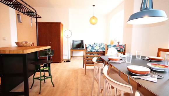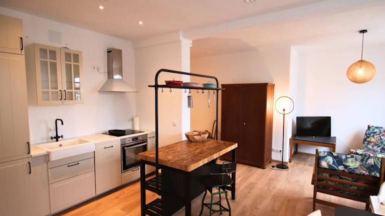 Die Ferienwohnungen sind mit einer voll ausgestatteten Küche ausgestattet, die einen Kühlschrank, Geschirrspüler, Ofen, Mikrowelle, Herdplatte, Kaffeemaschine und Wasserkocher umfasst, wodurch den Gästen die Möglichkeit geboten wird, selbst zu kochen und Mahlzeiten zuzubereiten.