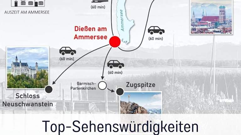 Die Unterkunft befindet sich 48 km von Bahnhof München-Pasing entfernt. Der nächstgelegene Flughafen ist der Flughafen Memmingen, welcher sich 76 km entfernt befindet. In der Nähe können Gäste Aktivitäten wie Skifahren und Fahrradfahren nachgehen. Außerdem liegt das Freilichtmuseum Glentleiten in einer Distanz von 48 km.