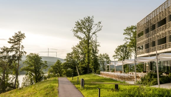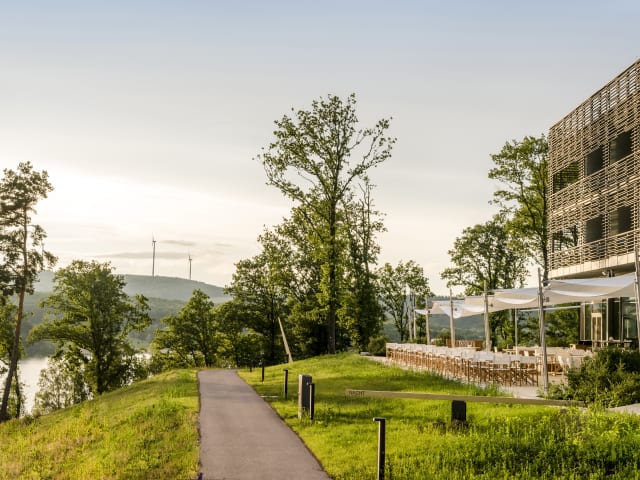 Die Seezeitlodge ist exponiert gelegen auf einem bewaldeten Kap, mit einem stolzen Blick über den Bostalsee. Verknüpft mit ihrer regionalen Geschichte, lädt die Seezeitlodge insbesondere mit ihrem einzigartigen Spa-Angebot dazu ein, in die einstige Welt der Kelten einzutauchen. Architektur und Design vereinen dabei die Gemütlichkeit des Waldes sowie die Weite des Sees.
