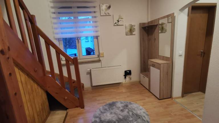 Erleben Sie einen angenehmen Aufenthalt in der Sehr Schönen 2 Zimmer Maisonnette Wohnung in Ansbach. Mit kostenfreiem WLAN und einem Flachbild-TV ausgestattet, bietet Ihnen diese Wohnung alles, was Sie für einen komfortablen Aufenthalt benötigen. Genießen Sie die Annehmlichkeiten eines Balkons und einer Terrasse sowie eines Schlafzimmers, eines Wohnzimmers, einer voll ausgestatteten Küche und zwei Badezimmern. Handtücher und Bettwäsche werden gestellt. Die Wohnung liegt in der Nähe der Stadthalle und des Freizeitparks PLAYMOBIL, und der Flughafen Nürnberg ist nur 68 km entfernt.