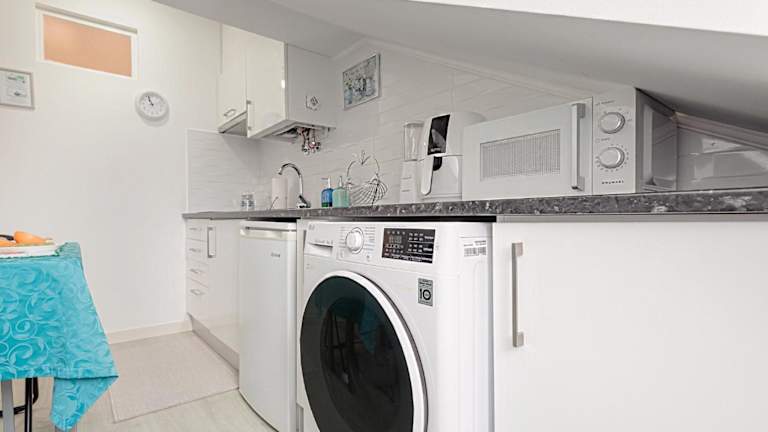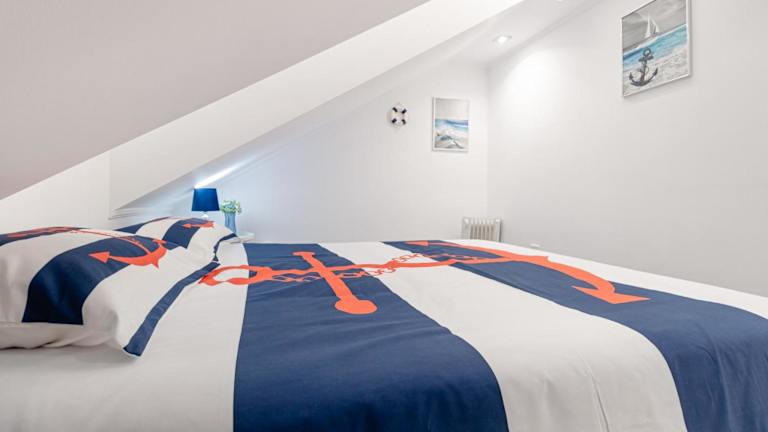 Die Ferienwohnung bietet zwei Schlafzimmer, ein Wohnzimmer und eine voll ausgestattete Küche mit Kühlschrank und Kaffeemaschine. Ein Badezimmer mit Dusche und kostenlosen Pflegeprodukten ist ebenfalls vorhanden. Handtücher und Bettwäsche werden bereitgestellt.