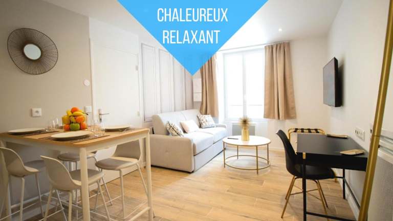 Das Self Checkin Automatique - Downtown - EUROPE CHIC ist ein Apartment in La Ferté-sous-Jouarre, das sich ideal für Angelfreunde und Golfliebhaber eignet. Mit einer voll ausgestatteten Küche und einem gemütlichen Wohnzimmer mit Flachbild-TV bietet das Apartment allen Komfort für einen angenehmen Aufenthalt. Die Lage ist auch günstig, um den Bahnhof Vert Galant und den Vergnügungspark Mer de Sable zu erreichen. Der Flughafen Paris-Charles-de-Gaulle ist ebenfalls nicht weit entfernt.
