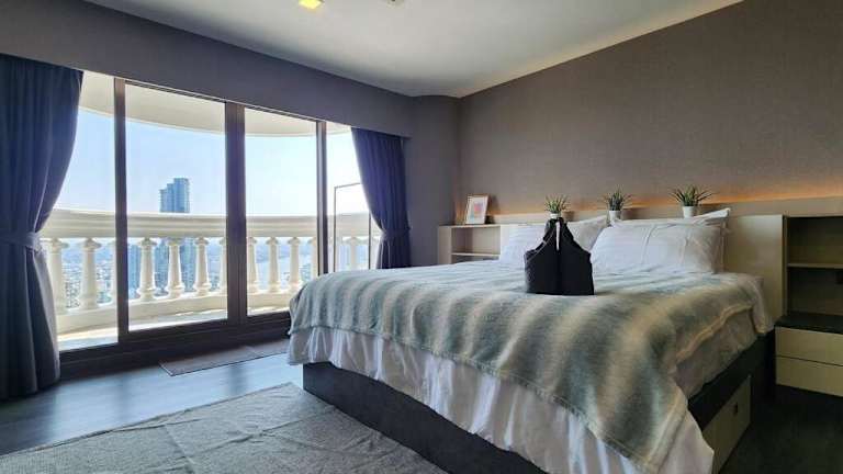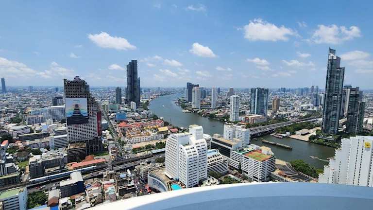 SelfCheckIn The State Tower RiverView 2Bedroom BTS ICONSIAM Silom Sathon bietet eine Unterkunft mit Stadtblick sowie mit einer Terrasse und einem Balkon. Die Ferienwohnung ist mit Klimaanlage ausgestattet und bietet Flussblick. Kostenfreies WLAN ist in der gesamten Unterkunft verfügbar.