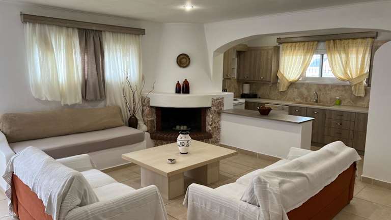 Selinia Villa Nikos Gianna bietet eine Ferienwohnung mit 2 Schlafzimmern und einem Wohnzimmer. Die Ausstattung umfasst einen Flachbild-TV mit Kabelkanälen, eine voll ausgestattete Küche mit Kühlschrank und Geschirrspüler sowie ein Badezimmer mit Haartrockner. Die Wohnung bietet zudem Handtücher und Bettwäsche.