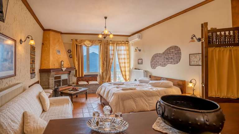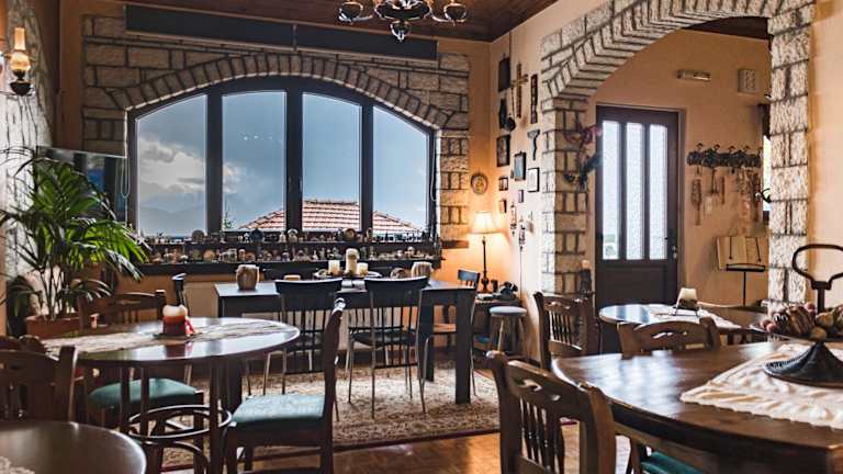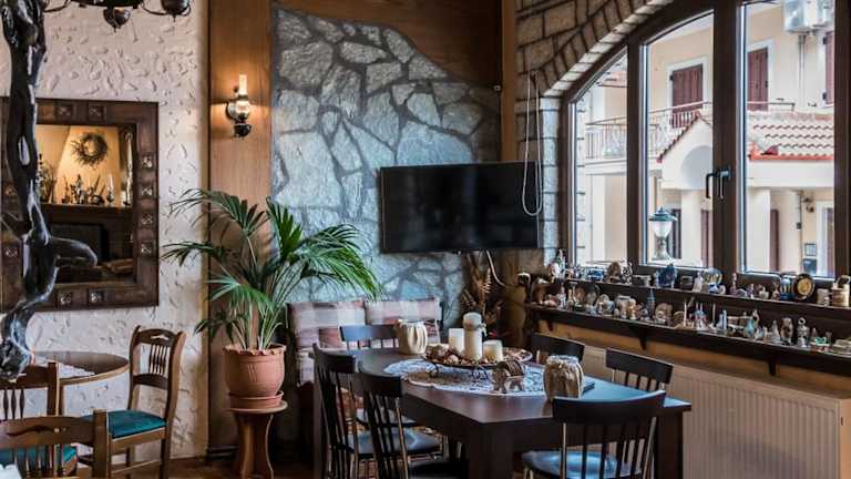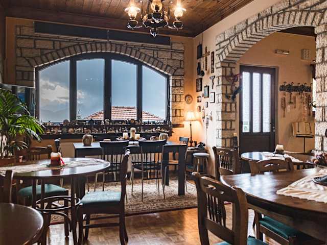 Im Semeli Guesthouse können Sie den Tag mit einem köstlichen traditionellen Frühstück beginnen, das hausgemachtes Brot, Marmeladen, Pfannkuchen und Kuchen umfasst. Am Abend können Sie sich am Kamin entspannen und heiße Getränke, lokale Getränke und Desserts genießen. Die Bar des Guesthouse bietet eine gemütliche Atmosphäre, in der Sie sich mit anderen Gästen treffen und entspannen können.